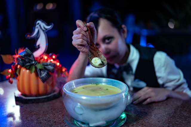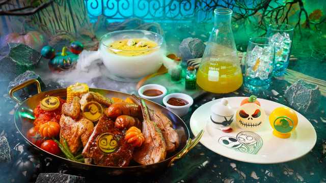 入鄉隨俗,賓客要把握好千載難逢的機會向村民們學習調製獨特配方的魔藥特飲,隨即再效仿莎莉,親手炮製科學怪人最愛的迷魂湯!當賓客細味怪誕的主題晚餐菜式時, 阿Jack、莎莉及Oogie Boogie將與大家近距離互動,切記虛心請教他們的時尚秘訣。於網上訂座時記得加購拍攝服務,由駐場的怪誕城攝影師親自操刀,為你拍下更多「驚」喜!