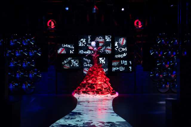 進入舞會場內,各位賓客旋即被惡絕全場的庫伊拉紅色長裙及周邊的裝飾所吸引,沿著地上不停幻變的投影猶如走在時尚天橋,讓你搶盡「瘋」頭。
