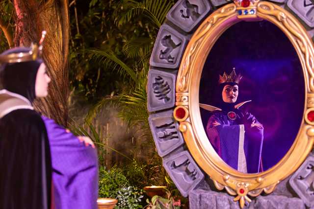 萬聖節時尚潮流一路延伸至園內不同位置,令人敬畏的迪士尼惡人,及換上萬聖節主題服飾的迪士尼朋友紛紛成為耀眼焦點。踏進「派對惡人谷」,賓客隨即被狂野派對氣氛包圍,記得擺出最「惡」表情,與黑魔后和邪惡皇后鬥擺甫士角力。