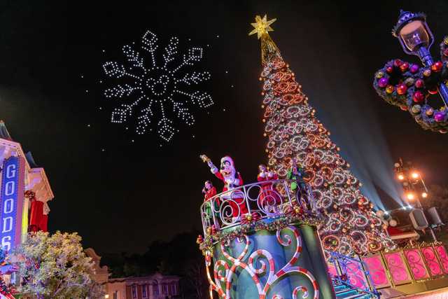 傳統聖誕節目「夢想成真聖誕樹亮燈禮」載譽而歸,聖誕高飛更會參與今年的亮燈禮,伴隨聖誕歌詠團帶來的經典聖誕樂曲,為賓客送上配合全新圖案的無人機表演,以更璀璨的燈光效果與漫天飄雪,締造更璀璨溫馨的時刻!賓客更可投入滿載奇妙的傳統派對「米奇與好友聖誕舞會」,亦可於「星願夢幻 飄雪時刻」中為正在分享節日願望的Duffy與好友拍照留念。
