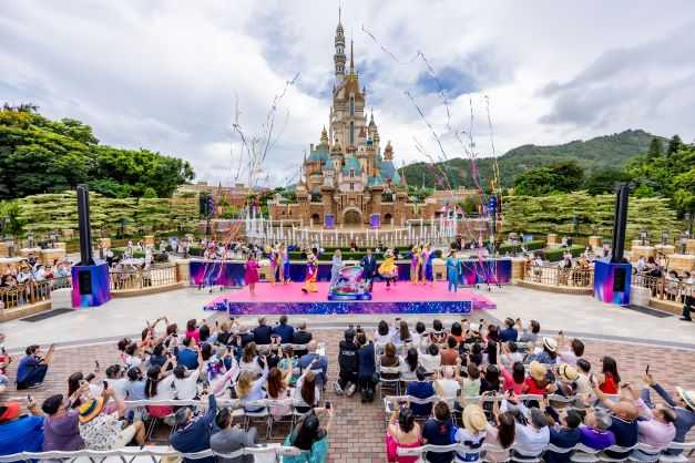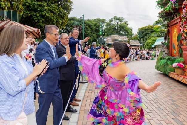 隨後,主禮嘉賓與來自本港、內地及台灣、日本、新加坡、泰國、菲律賓及美國等地的受邀持分者、傳媒代表、名人及內容創作者等一同欣賞香港迪士尼有史以來最大型巡遊「迪士尼好友巡遊派對」的首場表演。