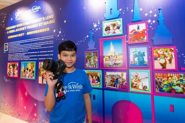 14歲的願望童Ernest是今次派對的主角之一。他曾患上腎病,經歷了腎臟移植手術,戰勝病魔的他有一個攝影願望,今年在香港迪士尼和願望成真基金攜手合作下得以實現。